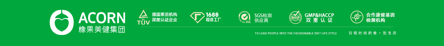 广州市橡果生物科技有限公司成立于2006年,是一家集研发、生产、销售于一体的大健康食饮产品高新技术企业,致力于为客户提供包括市场分析、产品研究与开发、生产与包装、质量管理以及营销支持等一站式产品智造解决方案服务。并以优秀的产品,高品质的服务,助力合作伙伴赢得成功。
